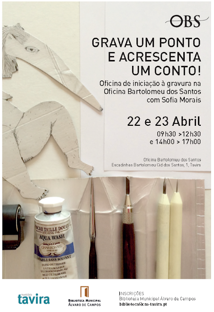Estão abertas inscrições para a Oficina de Gravura a realizar-se na Oficina Bartolomeu dos Santos, nos dias 22 e 23 de Abril.